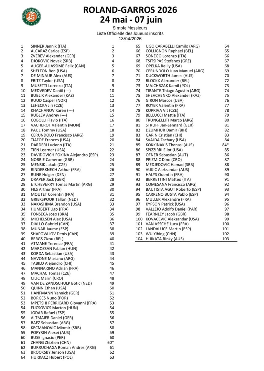 Z Polaków miejsca w drabinkach głównych (od 24 maja) mają: Iga Świątek, Magdalena Fręch, Magda Linette, Hubert Hurkacz i Kamil Majchrzak.