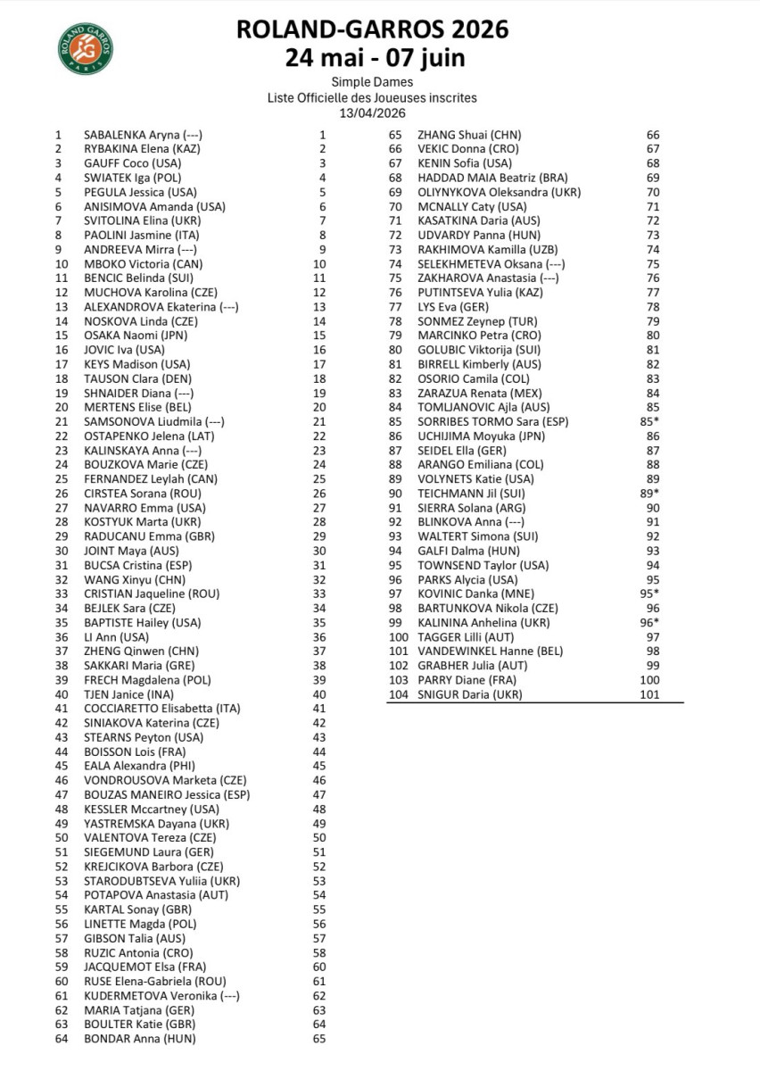 Z zamrożonego rankingu przy zgłoszeniach skorzystały: Anhelina Kalinina, Jil Teichmann, Sara Sorribes Tormo i Danka Kovinic.