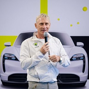 Uczestnicy zawodów w Lesznie również usiedli za kierownicą Porsche Taycan. Poczuli moc silnika.