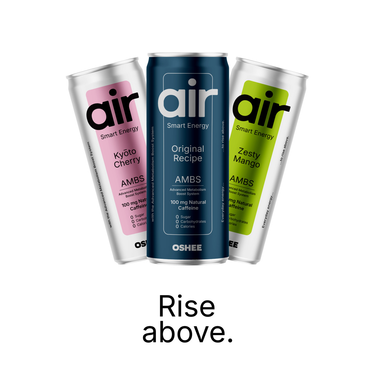 OSHEE otwiera nowy rozdział w rozwoju portfolio, wprowadzając na rynek air - funkcjonalny napój energetyczny, stworzony z myślą o codziennym rytmie dnia. Dzięki autorskiej formule AMBS (Advanced Metabolism Boost System) oraz naturalnej kofeinie, air towarzyszy codziennym aktywnościom – od pracy i nauki, przez codzienne obowiązki, po spotkania towarzyskie - wszędzie tam, gdzie liczą się koncentracja, lekkość i skupienie.