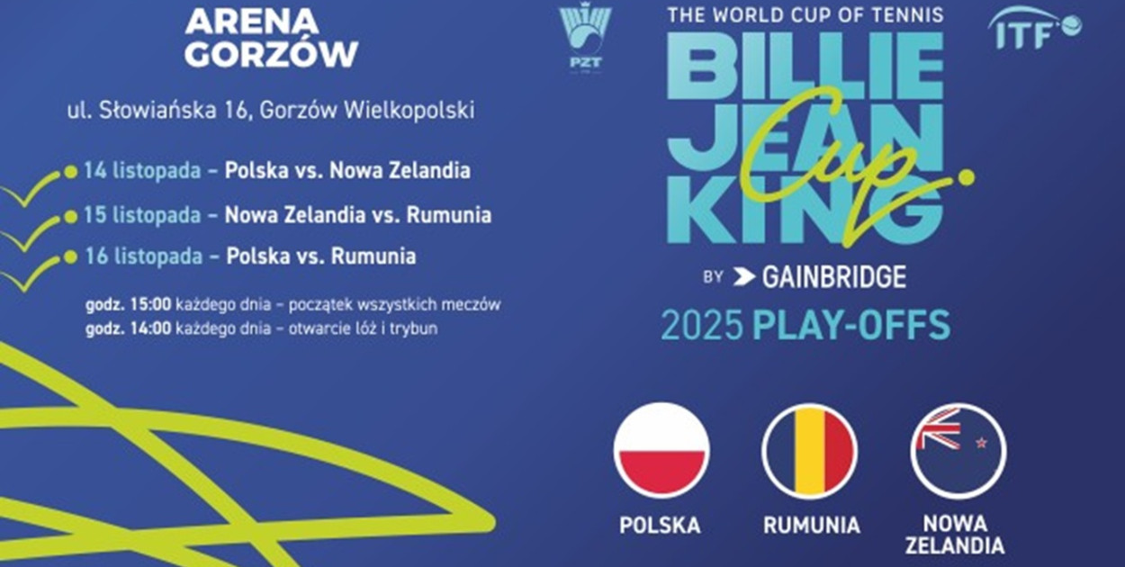 W dniach 14-16 listopada w Arenie Gorzów odbędzie się turniej kwalifikacyjny grupy B drużynowych rozgrywek Billie Jean King Cup z udziałem Polek - rozgrywany w ramach „The World Cup of Tennis”. Rywalkami biało-czerwonych będą tenisistki z Rumunii i Nowej Zelandii. Awans uzyska tylko najlepszy zespół.