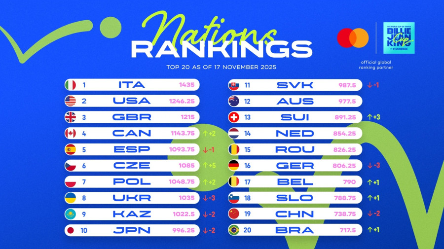 Polki po zwycięstwie w turnieju kwalifikacyjnym Grupy B Billie Jean King Cup w Gorzowie Wielkopolskim awansowały na siódme miejsce na świecie w rankingu narodowych drużyn. Będą rozstawione w losowaniu par meczów kwalifikacyjnych (9-10 lub 10-11 kwietnia) o prawo gry we wrześniowym BJK Cup Finals 2026 w Shenzhen.